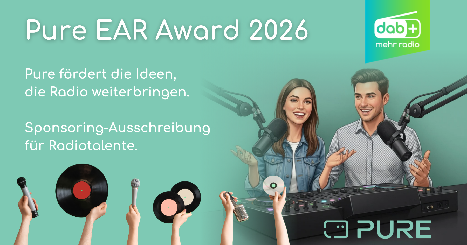 Radio verbindet Generationen, inspiriert und bleibt auch im digitalen Zeitalter ein unverzichtbares Medium. Zum World Radio Day 2026 setzt die britische Audiomarke Pure ein starkes Zeichen für die Zukunft des Radios und ruft anlässlich ihres 25-jährigen Jubiläums den Pure EAR Award ins Leben: Eine neue Sponsoring-Ausschreibung, die gezielt junge Radiomacherinnen und Radiomacher, Studentenradios, Nachwuchsmoderatoren/-techniker sowie Ausbildungs- und Lehrformate fördert, die Radio innovativ weiterdenken.